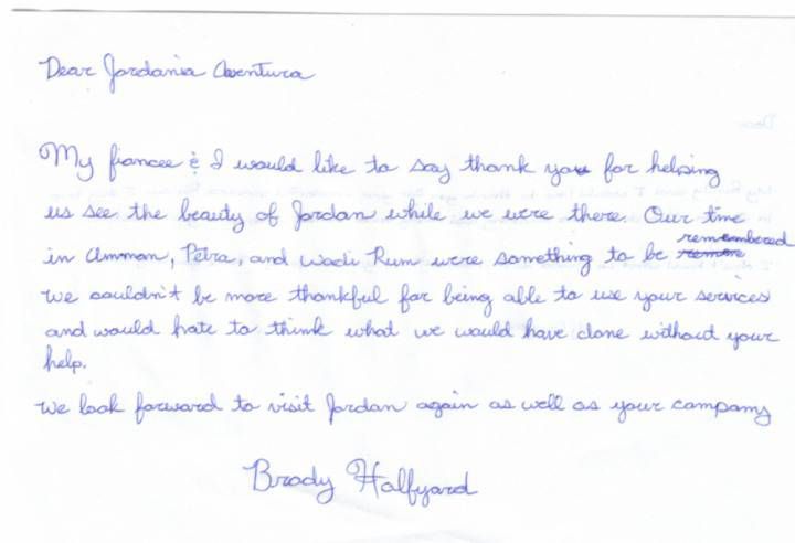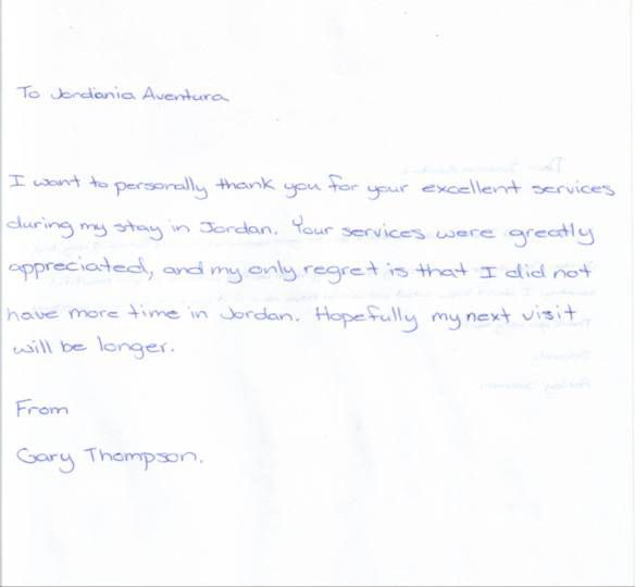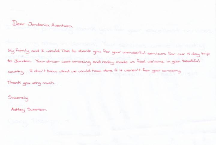 I just came back from an amazing trip to Jordan. We used jordania-aventura-drivers.com to organize a driver with car and it was wonderful experience. I have previously done tours with larger companies and was a little nervous about sending the deposit off before the trip direct to Jordan. I sent a deposit by Western union and this was all ok. I needn't have worried the driver turned up on time at the airport, and I think we saved a small fortune organizing the trip this way. Speaking about our driver, Ahmad, we cannot say enough about him. He was more than a driver; he was also a guide-and a friend. We found him to be a fount of information about the country, its history, the culture, the foods, etc. Ahmad was very forthcoming in telling us about life in Jordan. We pummeled him with questions and he always responded freely, graciously, and pleasantly. Although he has been a driver for a number of years, he is not jaded. Instead, he seems to take great joy in sharing his culture. We felt that the experience was reciprocal. Not only is Ahmad extremely friendly, courteous, and knowledgeable, but he is a safe driver and does everything he can to ensure that you have that 'once-in-a-lifetime-trip'. Jordania-aventura-drivers.com did an excellent job for us. We appreciated most the flexibility and adaptability and advice in responding to our particular interests. We would recommend their services to any and all, with praise.